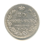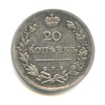 20 копеек — Орел 2 типа. Корона меньше 1826 СПБ НГ