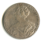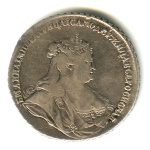 1 рубль — Портрет Анны. Петербургский тип. Брошь на плаще. Орел Московского типа. Без букв СПБ под орлом 1738. Биткин R1. Петров: 3,5 рублей
