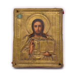 Икона «Господь Вседержитель (Спас Вседержитель)» в металлическом окладе. Дерево, хромолитография с лаком (?), латунь. Размер 11,5×13,5 см»» 47 Дмитрий Б 232