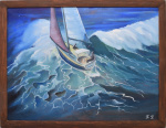 Картина «Яхта на волне». Автор: Г. Гусева. Масло, холст. Размер 43×33 см