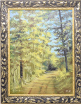 Картина «Дорога через лес». Автор: Галина Гусева. Масло. Размер 47×38 см. Холст на картоне грунтованный