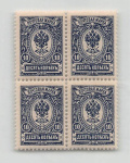 Российская Империя. Стандартный выпуск. 10 коп. Квартблок. Клей, без наклейки. **
