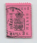 Марка почтовая. Российская Империя. Земская почта. Шацкий уезд. 3 коп. На розовой бумаге. № 35 (Соловьев 15 $) 1904