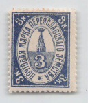 Марка почтовая. Российская Империя. Земская почта. Переяслав. 3 коп. Тип1. № 27(Соловьев 10 $).Клей, наклейка. * 1913